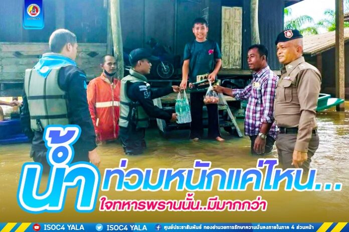 เมื่อวันที่ 14 พฤศจิกายน 2565 เวลา 14.00 น. หน่วยเฉพาะกิจกรมทหารพรานที่ 43 จัดกำลังพลชุดปฏิบัติการเสริมสร้างความเข้าใจ ร่วมกับ พันตำรวจโท วสัน รักชาติพานิช สารวัตรใหญ่ตำบลตุยง, ชุดคุ้มครองตำบลลิปะ ลงพื้นที่บริเวณบ้านโคกยาร่วง หมู่ที่ 1 บ้านมะพร้าวต้นเดียว อำเภอหนองจิก จังหวัดปัตตานี เพื่อไปตรวจสภาพระดับน้ำเฝ้าติดตามสถานการณ์น้ำเอ่อล้นตลิ่งเข้าท่วมพื้นที่ชุมชน และพื้นที่การเกษตร และเยี่ยมเยียนให้กำลังใจประชาชนผู้ประสบภัยน้ำล้นตลิ่งท่วมขังบ้านเรือน พร้อมทั้งเตรียมการเข้าให้การช่วยเหลือประชาชนที่ประสบภัยน้ำท่วม ตลอดจนยังได้มอบสิ่งของอุปโภค-บริโภค เพื่อบรรเทาความเดือดร้อนของประชาชนในพื้นที่ได้รับผลกระทบจากแม่น้ำปัตตานี
