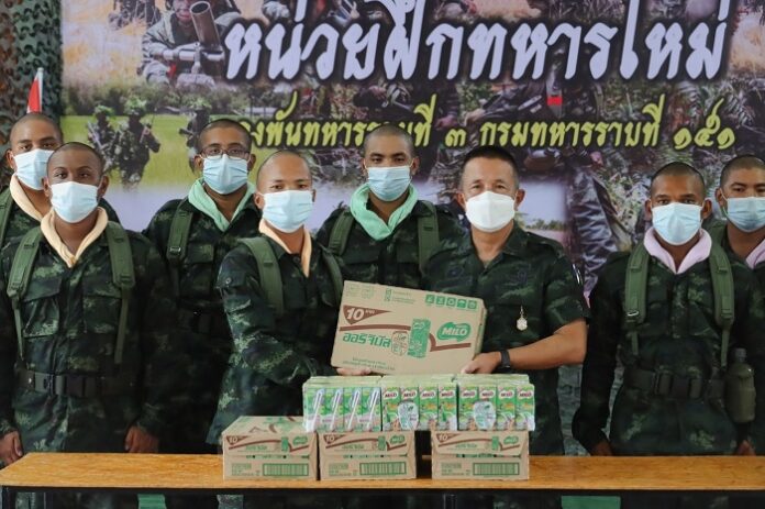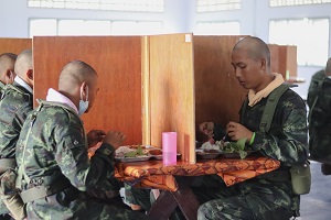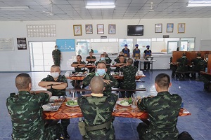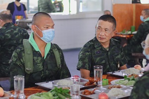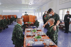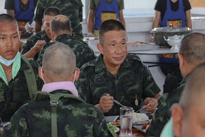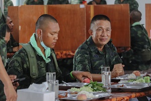 ในโอกาสนี้รองแม่ทัพภาคที่ 4 และคณะฯ ได้ร่วมกล่าวคำปฏิญาณก่อนรับประทานอาหารร่วมกันกับทหารใหม่กองพันทหารราบที่ 3 กรมทหารราบที่ 151 ซึ่งอาหารที่ประกอบเลี้ยงแก่ทหารใหม่ได้รับประทานนั้น เป็นไปตามที่กองทัพกำหนด คือ วันละ 3 มื้อ โดยน้องทหารใหม่ต้องกินอิ่ม สารอาหารครบถ้วน รสชาติ อร่อย สะอาดปลอดภัย ถูกต้องตามหลักโภชนาการ พร้อมกันนี้ยังได้ตรวจเยี่ยม และรับฟังบรรยายสรุปการฝึกของหน่วยฝึกทหารใหม่ กองพันทหารราบที่ 3 กรมทหารราบที่ 151 ซึ่งได้ยึดถือแนวทางตามระเบียบ และหลักสูตรปฏิบัติการฝึกทหารใหม่ได้ถูกต้อง สอดคล้องกับนโยบายการฝึกให้เกิดความเรียบร้อย สร้างทัศนคติ ปรับเปลี่ยนความคิดให้ทันสมัย สร้างคนให้มีวินัย สร้างความมั่นคงให้กับประเทศชาติ โดยปราศจากการสูญเสีย และก่อให้เกิดความภาคภูมิใจแก่น้องทหารใหม่ตลอดจนครอบครัว