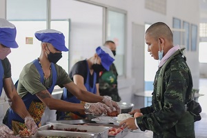 วันนี้ (15 พฤศจิกายน 2565) พลตรี ปราโมทย์ พรหมอินทร์ รองแม่ทัพภาคที่ 4 / รองผู้อำนวยการรักษาความมั่นคงภายในภาค 4 ส่วนหน้า และคณะฯ ลงพื้นที่ตรวจเยี่ยมการประกอบเลี้ยงและการรับประทานอาหารของทหารกองประจำการ เพื่อดูแลสวัสดิการและชีวิตความเป็นอยู่ของทหารใหม่ พร้อมทั้งมอบนโยบายแก่หน่วยฝึกทหารใหม่ ณ โรงเลี้ยงกองพันทหารราบที่ 3 กรมทหารราบที่ 151 ค่ายกรมหลวงนราธิวาสราชนครินทร์ บ้านปิเหล็ง ตำบลมะรือโบออก อำเภอเจาะไอร้อง จังหวัดนราธิวาส โดยมี พันเอก ยุทธนา สายประเสริฐ ผู้บังคับการกรมทหารราบที่ 151, พันโท ณัฐวุฒิ ศรีสังข์ ผู้บังคับกองพันทหารราบที่ 3 กรมทหารราบที่ 151, ครูฝึกและทหารใหม่ ร่วมต้อนรับและรับประทานอาหารพร้อมกัน