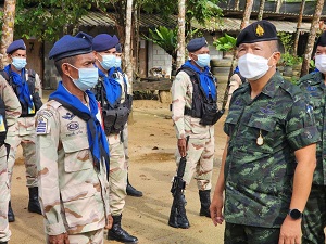 วันนี้ (15 พฤศจิกายน 2565) เวลา 09.00 น. พลตรี ปราโมทย์ พรหมอินทร์ รองแม่ทัพภาคที่ 4 / รองผู้อำนวยการรักษาความมั่นคงภายในภาค 4 ส่วนหน้า พร้อมคณะ เดินทางลงพื้นที่ตรวจเยี่ยมให้กำลังใจอาสาสมัครชุดคุ้มครองตำบล (ชคต.) ในพื้นที่จังหวัดนราธิวาส เพื่อรับทราบปัญหาข้อขัดข้องของชุดคุ้มครองตำบล พร้อมประชุมหารือแนวทางการปฏิบัติงานให้มีประสิทธิภาพมากยิ่งขึ้น โดยได้ลงตรวจเยี่ยม จำนวน 5 ชุด ประกอบด้วย ชุดคุ้มครองตำบลจะแนะ อำเภอจะแนะ, ชุดคุ้มครองตำบลศรีสาคร และชุดคุ้มครองตำบลซากอ อำเภอศรีสาคร, ชุดคุ้มครองตำบลมูโนะ อำเภอสุไหงโกลก และ ชุดคุ้มครองตำบลบางขุนทอง อำเภอตากใบ จังหวัดนราธิวาส โดยมี นายอำเภอ , หัวหน้าชุดคุ้มครองตำบล , สมาชิกอาสาสมัครประจำชุดคุ้มครองตำบล พร้อมภาคส่วนที่เกี่ยวข้อง ร่วมให้การต้อนรับ