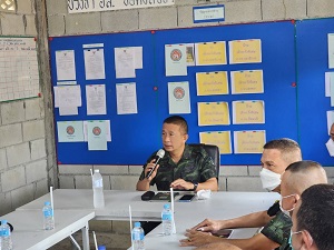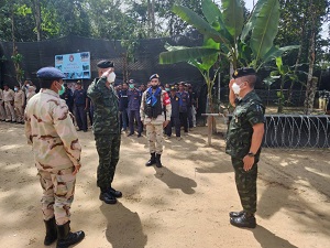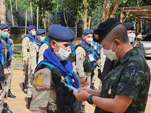 รองแม่ทัพภาคที่ 4 กล่าวว่า เรามีความมั่นใจในประสิทธิภาพของชุดคุ้มครองตำบล หลังจากที่เราได้มีการฝึกเพื่อเพิ่มประสิทธิภาพให้กับชุดคุ้มครองตำบล และเข้ารับการประเมินความเข้มแข็งของชุดคุ้มครองตำบลอย่างต่อเนื่อง สิ่งแรก คือ อยากเข้ามาให้กำลังใจ สิ่งที่เป็นข้อเน้นย้ำและเป็นข้อห่วงใยของผู้บัญชาการทหารบก และแม่ทัพภาคที่ 4 ประเด็นแรก คือ ให้เจ้าหน้าที่ทุกคนหูตาไว และติดตามข้อมูลข่าวสารอย่างใกล้ชิดใน ประการที่สองคือ เรื่องของการปฏิบัติงาน ซึ่งในปีนี้ก็จะเน้นในการเพิ่มประสิทธิภาพให้สามารถปฏิบัติงานได้จริง เน้นย้ำในการปฏิบัติตามระเบียบปฏิบัติประจำ ซึ่งที่ผ่านมาพบว่า มักจะมีช่องว่างให้ผู้ก่อเหตุลงมือก่อเหตุ ฉะนั้น หน่วยจะต้องมีการกำหนดมาตรการในทำงาน มีการปรับเปลี่ยนรูปแบบวิธีการอยู่ตลอดเวลา และประการที่สาม คือ เรื่องการประพฤติของเจ้าหน้าที่ ในฐานะที่เป็นส่วนหนึ่งของหน่วยงานราชการ จะต้องทำตนเป็นแบบอย่างของข้าราชการที่ดี ไม่สร้างเงื่อนไข โดยเฉพาะสิ่งที่เป็นกฎเหล็กของ กองอำนวยการรักษาความมั่นคงภายในภาค 4 ส่วนหน้า เรื่องชู้สาว เรื่องการก่อเหตุทะเลาะวิวาท และที่สำคัญคือ เรื่องยาเสพติด ขณะนี้ทุกหน่วย ทุกสังกัดได้ทำความสะอาดให้กับบ้านของตัวเอง ได้ตรวจหาสารเสพติดเช่นเดียวกับท่านแม่ทัพภาคที่ 4 รวมถึงรองแม่ทัพภาค 4 อีกประการหนึ่งที่เป็นความห่วงใย คือ เรื่องของการลาพักของกำลังพล เมื่อต้องลาพักกลับบ้านในภูมิลำเนาให้มีความระมัดระวัง โดยสรุปในภาพรวมของ อส.ในปีนี้ ถือได้ว่ามีพัฒนาการไปในทิศทางที่ดีขึ้นเยอะ มีความเข้มแข็งขึ้นมาก ทำให้เราเชื่อมั่นว่าอนาคตการส่งผ่านความรับผิดชอบในการดูแลพื้นที่อย่างเต็มรูปแบบ 100 เปอร์เซ็น ให้กับชุดคุ้มครองตำบล คงอีกไม่นาน อาสาสมัครเป็นกำลังทางยุทธศาสตร์ที่เราสร้างขึ้นมา เพื่อดูแลชุมชนของเขา “เราไม่ได้สร้างขึ้นมาเพื่อมารบกับใคร เราสร้างเพื่อป้องกันชีวิตของพี่น้องประชาชน ดูแลชุมชนของตัวเอง เพราะฉะนั้นไม่ว่าจะมีอะไรเกิดขึ้นก็ตามก็พร้อมที่จะทำหน้าที่ให้ดีที่สุด” อยากจะบอกทุกคนว่าสิ่งที่ท่านกำลังทำอยู่ตอนนี้ ถือว่าเป็นความเสียสละความสุขส่วนตัว เพื่อความสงบสุขของสังคม และพร้อมจะสนับสนุนในทุกเรื่อง สำคัญที่สุด คือการดูแลเรื่องความเป็นอยู่และสวัสดิการให้ดีที่สุด