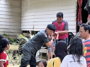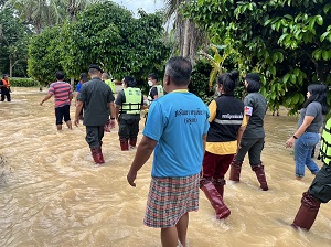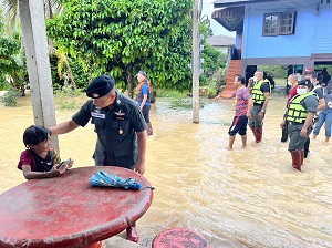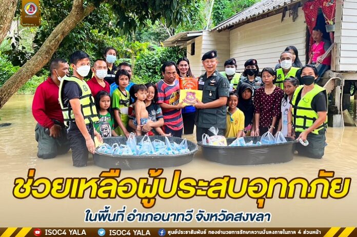 ที่ บ้านปลักผอม หมู่ที่ 5 ตำบลท่าประดู่ อำเภอนาทวี จังหวัดสงขลา พันตำรวจโท วิษณุ ชนะอักษร ผู้บังคับการหน่วยเฉพาะกิจตำรวจตระเวนชายแดนที่ 43 พร้อมด้วย ฝ่ายกิจการพลเรือน หน่วยเฉพาะกิจตำรวจตระเวนชายแดนที่ 43 ,ประธานโฆษกชาวบ้านจังหวัดสงขลา ร่วมกับ องค์การบริหารส่วนตำบลท่าประดู่ และส่วนราชการที่เกี่ยวข้อง เดินทางสำรวจพื้นที่ประสบภัย และเข้าช่วยเหลือผู้ประสบอุทกภัย พร้อมมอบข้าวสาร อาหารแห้ง และน้ำดื่มแก่ผู้ประสบอุทกภัยเพื่อเป็นขวัญกำลังใจและบรรเทาความเดือดร้อนในเบื้องต้น โดยมี นายสหภาพ หวังเลาะ ผู้ใหญ่บ้าน เป็นผู้แทนรับมอบ ทั้งนี้การปฏิบัติดังกล่าวเป็นไปด้วยความเรียบร้อย