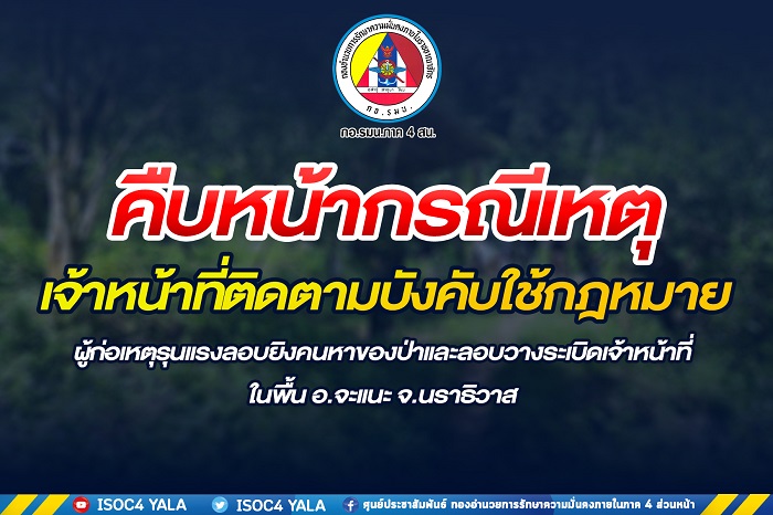 ทั้งนี้ กองอำนวยการรักษาความมั่นคงภายในภาค 4 ส่วนหน้า ต้องขอขอบคุณพี่น้องประชาชนที่ได้ให้ข้อมูลที่เป็นประโยชน์แก่เจ้าหน้าที่ จนนำไปสู่การบังคับใช้กฎหมายในครั้งนี้ หากพี่น้องประชาชนพบเห็นการกระทำผิดกฎหมายหรือพบเบาะแสผู้ก่อเหตุรุนแรง สามารถแจ้งได้ที่ เจ้าหน้าที่ฝ่ายความมั่นคงประจำพื้นที่ หรือหมายเลขสายด่วนกองอำนวยการรักษาความมั่นคงภายในภาค 4 ส่วนหน้า หมายเลข 1341 หรือ หมายเลขโทรศัพท์สายตรง แม่ทัพภาคที่ 4 / ผู้อำนวยการรักษาความมั่นคงภายในภาค 4 หมายเลข 061-1732999 ได้ตลอด 24 ชั่วโมง