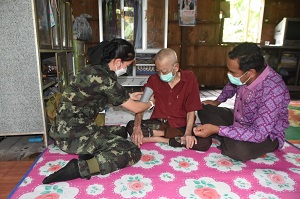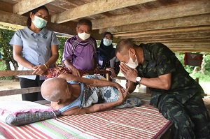 เมื่อวันที่ 18 พฤศจิกายน 2565 เวลา 13.30 น. ที่บ้านโคกโก ตำบลโต๊ะเด็ง อำเภอสุไหงปาดี จังหวัดนราธิวาส พันเอก อังคาร พร้อมสุข รองผู้อำนวยการศูนย์ประสานงานโครงการอันเนื่องมาจากพระราชดำริ ลงพื้นที่ ส่งต่อความห่วงใย บุกถึงบ้าน แจกถุงยังชีพ และผลผลิตทางการเกษตร มอบถึงมือ ผู้สูงอายุ ผู้พิการ ผู้ยากไร้ พร้อมจัดชุดแพทย์สนาม ตรวจสุขภาพเบื้องต้น ให้แก่พี่น้องประชาชนในพื้นที่ โดยมี พันเอก ยุทธนา สายประเสริฐ ผู้บังคับการกรมทหารราบที่ 151 / หัวหน้าคณะทำงานที่ 3 พันเอก ภาคิน เกื้อกูล ผู้บังคับหน่วยเฉพาะกิจกรมทหารพรานที่ 48 เจ้าหน้าที่ตำรวจ เจ้าหน้าที่สาธารณสุข กำนัน ผู้ใหญ่บ้าน ผู้นำศาสนาประจำตำบล เข้าร่วมในกิจกรรม
