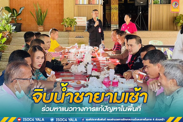 เมื่อวันที่ 22 พฤศจิกายน 2565 เวลา 07.30 น. ที่วัดยะหาประชาราม อำเภอยะหา จังหวัดยะลา พันโท จิรวัฒน์ พิทักษ์ รองผู้บังคับหน่วยเฉพาะกิจกรมทหารพรานที่ 47 พร้อมด้วยกำลังพล หน่วยเฉพาะกิจกรมทหารพรานที่ 47 ร่วมกับ ปลัดอำเภอยะหา, ส่วนราชการฯ และพี่น้องประชาชนในพื้นที่อำเภอยะหา จังหวัดยะลา ร่วมกิจกรรมจิบน้ำชายามเช้า “ลานธรรม ลานกาแฟ” เพื่อพบปะพัฒนาสัมพันธ์ แลกเปลี่ยนข้อคิดเห็น/ข้อเสนอแนะ และร่วมหาแนวทางในการแก้ปัญหาในพื้นที่ พร้อมทั้งแจ้งเตือนข้อมูลข่าวสารต่าง ๆ โดยมี ธนาคารออมสิน สาขายะหา และสถานีตำรวจภูธรปะแต เป็นหน่วยงานให้การสนับสนุนการจัดกิจกรรมในครั้งนี้
