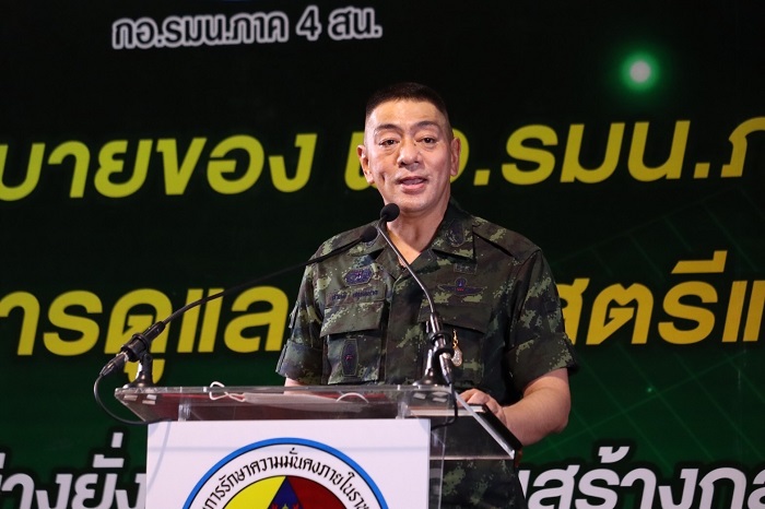 วันนี้ 25 พฤศจิกายน 2565 ณ สโมสรนายทหารสัญญาบัตร กองพลทหารราบที่ 15 ค่ายสุริโยทัย อำเภอหนองจิก จังหวัดปัตตานี พลโท ศานติ ศกุนตนาค แม่ทัพภาคที่ 4 /ผู้อำนวยการรักษาความมั่นคงภายในภาค 4 พบปะมวลชนกลุ่มสตรี และกลุ่มเยาวชนในพื้นที่จังหวัดชายแดนภาคใต้ เป็นอีกหนึ่งความตั้งใจหลักของแม่ทัพภาคที่ 4 ที่อยากเห็นกลุ่มสตรีและเยาวชนเข้ามามีบทบาทในการแก้ไขปัญหาจังหวัดชายแดนภาคใต้ ตามแนวคิดที่ว่า “กลุ่มสตรีต้องมีรายได้อย่างยั่งยืน โดยเสริมสร้างกลุ่มอาชีพที่มั่นคง และกลุ่มเยาวชนต้องห่างไกลจากยาเสพติด โดยส่งเสริมด้านการกีฬา” ซึ่งมีมวลชนกลุ่มสตรีและเยาวชน จากพื้นที่ 3 จังหวัดชายแดนภาคใต้ และ 4 อำเภอของจังหวัดสงขลาเข้าร่วมกิจกรรม เพื่อเปิดโอกาสให้มวลชนกลุ่มสตรีและกลุ่มเยาวชนได้รับทราบนโยบายการแก้ไขปัญหาในพื้นที่จังหวัดชายแดนภาคใต้ของกองอำนวยการรักษาความมั่นคงภายในภาค 4 ส่วนหน้า และร่วมรับฟัง แสดงความคิดเห็นเสนอแนะ ปัญหาข้อขัดข้องที่เกิดขึ้นในพื้นที่ และร่วมกันขับเคลื่อนการแก้ไขปัญหาด้วยกันในทุกมิติเพื่อให้เกิดความเข้าใจและสามารถอยู่ร่วมกันได้ภายใต้สังคมพหุวัฒนธรรม ซึ่งภายในงานมีการจัดแสดงบูธนิทรรศการของกลุ่มสตรีและกลุ่มเยาวชนในพื้นที่ เพื่อสื่อให้เห็นถึงขีดความสามารถ ศักยภาพของกลุ่มสตรีและกลุ่มเยาวชนที่ได้มีบทบาทในด้านต่างๆ พร้อมเข้ามามี ส่วนร่วมในการขับเคลื่อนการแก้ไขปัญหาจังหวัดชายแดนภาคใต้