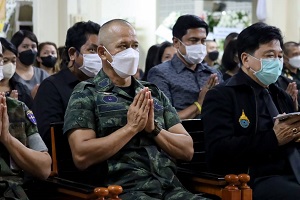 วันที่ 25 พฤศจิกายน 2565 เวลา 17.00 น. ที่ ณ วัดบางนรา อำเภอเมือง จังหวัดนราธิวาส พลโท ศานติ ศกุนตนาค แม่ทัพภาคที่ 4/ ผู้อำนวยการรักษาความมั่นคงภายในภาค 4 เป็นประธานพิธีสวดพระอภิธรรมศพ ร้อยตำรวจเอก สุทธิรักษ์ พันธนิยะ รองสารวัตรปราบปราม สถานีตำรวจภูธรเมืองนราธิวาส ซึ่งเสียชีวิตจากเหตุการณ์คนร้ายลอบวางระเบิดบริเวณที่พักข้าราชการตำรวจ สถานีตำรวจภูธรเมืองนราธิวาส ตำบลบางนาค อำเภอเมือง จังหวัดนราธิวาส เมื่อวันที่ 22 พฤศจิกายน 2565 ที่ผ่านมา