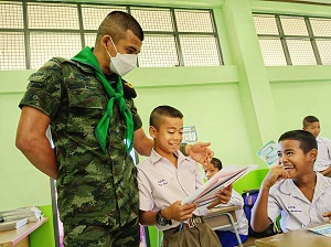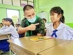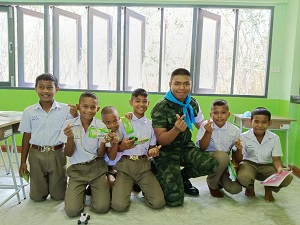 ด้านนักเรียนรู้สึกดีใจที่ พี่ๆ ทหารได้เข้ามาเยี่ยมในโรงเรียน รู้สึกมีความสุขและสนุกสนานในการเรียนการสอน ต่างให้ความร่วมมือในกิจกรรมการเรียนการสอนเป็นอย่างดี ไม่รู้สึกหวาดระแวงและหวาดกลัวเจ้าหน้าที่ มีความสนิทสนมกับเจ้าหน้าที่ทหารมากขึ้น รวมถึงสร้างรอยยิ้มเสียงหัวเราะ และมีความสุขในการเรียนมากขึ้น พร้อมทั้งบอกว่าอยากให้พี่ๆ ทหารเข้ามาทำกิจกรรมการเรียนการสอนอีก
