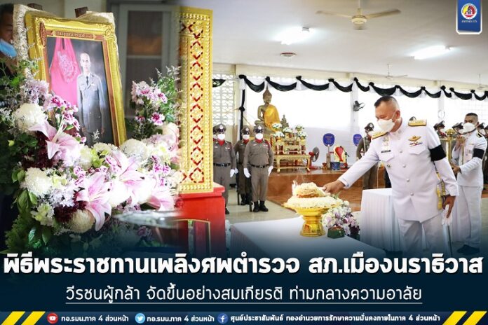 วันนี้ (28 พฤศจิกายน 2565) เวลา 13.00 น. ณ วัดบางนรา อำเภอเมือง จังหวัดนราธิวาส พลตรี ปราโมทย์ พรหมอินทร์ รองแม่ทัพภาคที่ 4/รองผู้อำนวยการรักษาความมั่นคงภายในภาค 4 ส่วนหน้า เดินทางร่วมพิธีพระราชทานเพลิงศพ ร้อยตำรวจเอก สุทธิรักษ์ พันธนิยะ รองสารวัตรปราบปราม สถานีตำรวจภูธรเมืองนราธิวาส ซึ่งเสียชีวิตจากเหตุคนร้ายลอบวางระเบิด บริเวณแฟลตที่พักข้าราชการตำรวจ สถานีตำรวจภูธรเมืองนราธิวาส อำเภอเมือง จังหวัดนราธิวาส เมื่อวันที่ 22 พฤศจิกายน 2565 ที่ผ่านมา โดยมี พลตำรวจโท สราวุฒิ การพานิช ผู้ช่วยผู้บัญชาการตำรวจแห่งชาติ เป็นประธานในพิธี พร้อมด้วย คณะผู้บังคับบัญชาจากกองอำนวยการรักษาความมั่นคงภายในภาค 4 ส่วนหน้า , ผู้บังคับบัญชาสำนักงานตำรวจแห่งชาติ , ผู้แทนศูนย์อำนวยการบริหารจังหวัดชายแดนภาคใต้ , หัวหน้าส่วนราชการ ข้าราชการทหาร ตำรวจ ประชาชน ตลอดจน คณะญาติเข้าร่วมพิธีเพื่อแสดงความไว้อาลัยต่อวีรชนผู้กล้า
