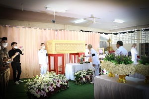 โดยพิธีพระราชทานเพลิงศพในครั้งนี้จัดขึ้นอย่างสมเกียรติ เพื่อไว้อาลัยเป็นครั้งสุดท้ายให้กับ ร้อยตำรวจเอก สุทธิรักษ์ พันธนิยะ และเมื่อขบวนอัญเชิญไฟพระราชทานมาถึงบริเวณประกอบพระราชพิธี ผู้บังคับบัญชา หน่วยในพื้นที่ ข้าราชการ ทหาร ตำรวจ ตลอดจนพี่น้องประชาชนในพื้นที่ตั้งแถวรอรับไฟพระราชทาน เจ้าหน้าที่อัญเชิญไฟพระราชทานขึ้นวางประจำจุดเตรียมประกอบพิธี จากนั้นประธานในพิธีขึ้นทอดผ้าบังสุกุล กองเกียรติยศเป่าแตรนอน บรรดาข้าราชการ ประชาชน ที่มาร่วมพิธีได้ขึ้นวางดอกไม้จันทน์ ร่วมไว้อาลัยเป็นครั้งสุดท้าย แก่วีรชนผู้เสียสละ สร้างความปลาบปลื้มและซาบซึ้งในพระมหากรุณาธิคุณที่ทรงมีต่อผู้กล้าในวาระสุดท้ายของชีวิต และครอบครัว ญาติผู้เสียชีวิตอย่างหาที่สุดมิได้