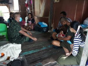หลังจากการพูดคุย หน่วยได้มอบเครื่องอุปโภค ข้าวสาร จำนวน 1 กระสอบ เเละเงินช่วยเหลือ ให้กับครอบครัวน้องทหารใหม่ เพื่อเป็นการช่วยเหลือในเบื้องต้น พร้อมทั้งสร้างขวัญกำลังใจในการปฏิบัติงานให้กับน้องคนเล็กของหน่วยให้มีความพร้อมในการปฏิบัติงานทั้งร่างกายและจิตใจ
