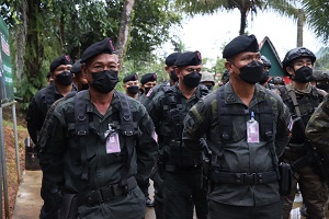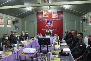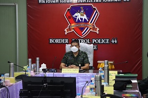 ต่อมาเวลา 17.00 น. ที่ห้องประชุมกองบังคับการหน่วยเฉพาะกิจตำรวจตระเวนชายแดนที่ 44 พลตรี ไพศาล หนูสังข์ รองแม่ทัพภาคที่ 4/ รองผู้อำนวยการรักษาความมั่นคงภายในภาค 4 ส่วนหน้า พร้อมคณะ ตรวจเยี่ยมการปฏิบัติงานของกำลังพล โดยมี พันตำรวจโท อาคม โพธิ์อ่อง รองผู้บังคับหน่วยเฉพาะกิจตำรวจตระเวนชายแดนที่ 44 รายงานผลการปฏิบัติงาน และกำลังพลร่วมให้การต้อนรับ ทั้งนี้ได้มอบนโยบายการปฏิบัติงานด้วยความไม่ประมาท ต้องตื่นตัวอยู่เสมอ การเฝ้าระวังพื้นที่ล่อแหลม และความพร้อมในการช่วยเหลือกลุ่มเปราะบาง พร้อมเน้นย้ำนโยบายการปฏิบัติงานของแม่ทัพภาคที่ 4/ ผู้อำนวยการรักษาความมั่นคงภายในภาค 4 ให้กำลังพลและเจ้าหน้าที่ต้องยึดถือ “ยุทธศาสตร์คนดี” เป็นสำคัญ ก่อนมอบเครื่องอุปโภค-บริโภค ให้กำลังพลได้มีกำลังใจปฏิบัติภารกิจเพื่อพี่น้องประชาชนต่อไป