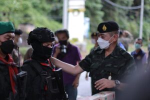 วันที่ 3 ธันวาคม 2565 เวลา 14.00 น. พลโท ศานติ ศกุนตนาค แม่ทัพภาคที่ 4 / ผู้อำนวยการรักษาความมั่นคงภายในภาค 4 เดินทางลงพื้นที่ อำเภอเบตง จังหวัดยะลา พร้อมด้วย พลตรี ปราโมทย์ พรหมอินทร์ รองแม่ทัพภาคที่ 4 / รองผู้อำนวยการรักษาความมั่นคงภายในภาค 4 ส่วนหน้า พบปะ เยี่ยมให้กำลังใจกองกำลังป้องกันชายแดน ตลอดจนกองกำลังพิทักษ์เมืองเบตง ได้แก่ กองร้อยตำรวจตระเวนชายแดนที่ 445, จุดตรวจศูนย์อำนวยการร่วมสถานีตำรวจภูธรเมืองยะลา, กองร้อยป้องกันชายแดนที่ 1 และกองกำลังพิทักษ์เมืองเบตง ซึ่งประกอบไปด้วยหน่วยงานต่างๆที่เกี่ยวข้องตลอดจนกำลังภาคประชาชนที่คอยทำหน้าที่ปกป้องรักษาความสงบเรียบร้อยให้แก่เมืองเบตง กล่าวขอบคุณ และชื่นชมการทำงานของทุกภาคส่วนในการสร้างความเชื่อมั่น และมั่นใจถึงความปลอดภัยของพี่น้องประชาชนในพื้นที่เบตง และนักท่องเที่ยว เน้นย้ำการประสานความร่วมมือกันปฏิบัติงานในพื้นที่ ก่อนมอบเครื่องอุปโภคบริโภค เพื่อเป็นขวัญและกำลังใจ โดยมี คณะผู้บังคับบัญชาจากกองอำนวยการรักษาความมั่นคงภายในภาค 4 ส่วนหน้า, ผู้บังคับหน่วยเฉพาะกิจยะลา, นายอำเภอเบตง, ผู้กำกับสถานีตำรวจภูธรเมืองยะลา ส่วนราชการที่เกี่ยงข้องร่วมเดินทางในครั้งนี้