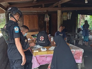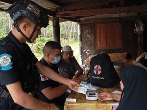 เมื่อวันที่ 3 ธันวาคม 2565 เวลา 10.00 น. หน่วยเฉพาะกิจทหารพรานนาวิกโยธิน กองทัพเรือ จัดเจ้าหน้าที่พยาบาลประจำกองร้อยฯ พร้อมด้วย ชุดปฏิบัติการเสริมสร้างความเข้าใจ พบปะเยี่ยมเยียน พูดคุย และสอบถามปัญหาความเดือดร้อนของประชาชน โดยทำการตรวจสุขภาพเบื้องต้นให้กับประชาชนในพื้นที่ ณ ร้านน้ำชาบ้านตะโล๊ะมีญอ หมู่ที่ 1 ตำบลตะปอเยาะ อำเภอยี่งอ จังหวัดนราธิวาส ตามโครงการ “หมอเดินเท้าเข้าหาชุมชน” เพื่อบรรเทาความเดือดร้อน และได้รับการรักษาในเบื้องต้นอย่างทั่วถึง ตลอดจนยังเป็นการสร้างภาพลักษณ์อันดีต่อประชาชนให้กับหน่วยงาน