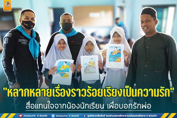สำหรับกิจกรรม “หลากหลายเรื่องราวร้อยเรียงเป็นความรัก” จัดขึ้นเพื่อเป็นการส่งเสริมปลูกฝังในความรักและเทิดทูนสถาบันหลักของชาติ และน้อมรำลึกถึงพระมหากรุณาธิคุณที่มีต่อปวงชนชาวไทย โดยเจ้าหน้าที่ทหารพรานได้จัดหาอุปกรณ์เครื่องเขียนวาดภาพมากแจกจ่ายให้น้องๆ นักเรียนได้ร่วมกิจกรรม พร้อมทั้งยังได้นำขนมและเครื่องดื่มมามอบให้กับคณะครูและนักเรียน เพื่อเป็นการสร้างความสัมพันธ์อันดีต่อคนในชุมชนและเจ้าหน้าที่ของรัฐ