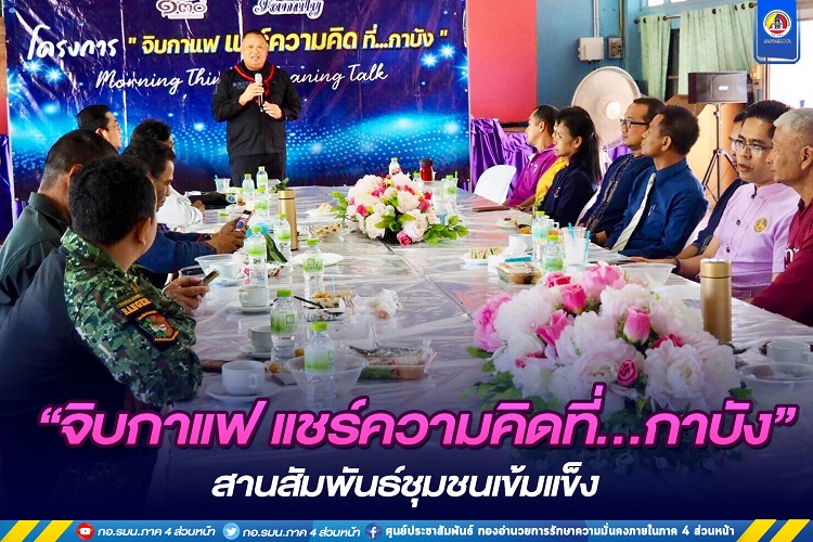 สำหรับการจัดกิจกรรมจิบกาแฟ แชร์ความคิด ในครั้งนี้ เพื่อให้ส่วนราชการได้โอกาสพบปะและแลกเปลี่ยนข้อคิดเห็น ร่วมพูดคุยการทำงาน มีส่วนราชการภาครัฐและเอกชน ได้แลกเปลี่ยนความคิดแบบไม่เป็นทางการ แบบเป็นกันเองเพื่อที่จะได้รับทราบข้อมูลต่าง ๆ ของแต่ละส่วน แต่ละภาคเอกชนที่ต้องการเสนอให้ส่วนราชการต่าง ๆ ได้ทราบในเบื้องต้น อีกทั้งยังเป็นการสร้างความสัมพันธ์อันดีต่อกันในการสร้างความเข้มแข็งให้ชุมชน