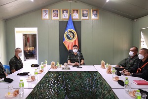 ต่อมา รองแม่ทัพภาคที่ 4 / รองผู้อำนวยการรักษาความมั่นคงภายในภาค 4 ส่วนหน้า พร้อมคณะฯ ลงพื้นที่กองร้อยทหารพรานที่ 4609 ตำบลโคกสะตอ อำเภอรือเสาะ จังหวัดนราธิวาส เพื่อติดตามการปฏิบัติงานของกองร้อยทหารพรานที่ 4602, กองร้อยทหารพรานที่ 4609, กองร้อยทหารพรานที่ 4610 และ กองร้อยทหารพรานที่ 4613 เพื่อติดตามการปฏิบัติงาน พร้อมเน้นย้ำให้เจ้าหน้าที่อำนวยความสะดวกและให้การช่วยเหลือพี่น้องประชาชน ทั้งการสัญจร ไป-มา บนท้องถนนด้วยการตั้งจุดตรวจ, จุดสกัด และตรวจจุดเสี่ยง, จุดล่อแหลมต่าง ๆ สกัดกั้น การขนย้ายสิ่งเสพติด, ของผิดกฎหมาย รวมทั้งบุคคลภายนอกที่เดินทางเข้า-ออกในพื้นที่รับผิดชอบ เพื่อเตรียมความพร้อมรักษาความปลอดภัยอำนวยความสะดวก และลดอุบัติเหตุทางถนนช่วงเทศกาลวันขึ้นปีใหม่ปี 2566