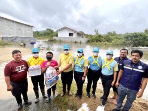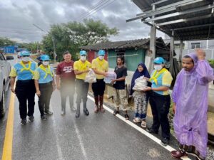 นอกจากนี้ยังได้ลงพื้นที่ไปตามบ้านเรือนในพื้นที่น้ำท่วม เพื่อมอบถุงยังชีพให้กับประชาชนที่ได้รับผลกระทบจากอุทกภัย จำนวน 11 ครัวเรือน และมอบถุงยังชีพให้กับกลุ่มเปราะบางจำนวน 1 หลัง และได้พบปะเยี่ยมเยียนให้กำลังใจ สอบถามผลกระทบในพื้นที่ เพื่อประสานหน่วยงานที่เกี่ยวข้องให้การช่วยเหลือต่อไป พร้อมทั้งมีข้อห่วงใยและเตือนประชาชนให้ระมัดระวังอันตรายอย่าให้เด็กลงเล่นน้ำ รวมทั้งอันตรายจากสัตว์มีพิษซึ่งอาจจะหนีน้ำเข้ามาในบ้านประชาชนได้