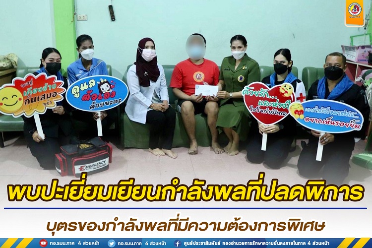 เมื่อวันที่ 11 ธันวาคม 2565 คุณอรวรา แสงกุล ประธานสมาคมแม่บ้านทหารบก สาขา กรมทหารพรานที่ 41 พร้อมด้วย เจ้าหน้าที่ทางด้านการแพทย์ อาสาสมัครสาธารณสุข (อสม.) ในพื้นที่ และกำลังพลกรมทหารพรานที่ 41 เดินทางพบปะเยี่ยมเยียน กำลังพลที่ปลดพิการ และบุตรของกำลังพลที่มีความต้องการพิเศษ เพื่อสอบถามความเป็นอยู่ รวมทั้งให้คำแนะนำเกี่ยวกับขั้นตอนต่าง ๆ ในการดูแล รักษาตลอดจนให้คำแนะนำข้อมูลต่าง ๆ ในส่วนของกรมทหารพรานที่ 41 ซึ่งมีจำนวน 2 ครอบครัว ประกอบด้วย อาสาสมัครทหารพราน กัมปนาท จันทร์พรหมศรี กำลังพลที่ปลดพิการ (พิการทางการมองเห็น) ซึ่งอาศัยอยู่ที่บ้านเลขที่ 30 ตำบลสะเตง อำเภอเมือง จังหวัดยะลา และ นายปิยณัฐ พรมแดน บุตรที่มีความต้องการพิเศษของ อาสาสมัครทหารพราน ธวัช พรมแดน สังกัด กองร้อยทหารพรานที่ 4101 ซึ่งอาศัยอยู่ที่บ้านเลขที่ 7/8 ตำบลสะเตง อำเภอเมือง จังหวัดยะลา