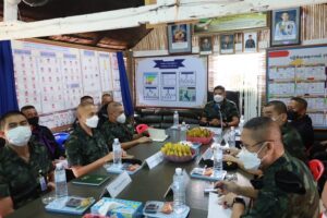 จากนั้น รองแม่ทัพภาคที่ 4 / รองผู้อำนวยการรักษาความมั่นคงภายในภาค 4 ส่วนหน้า พร้อมคณะฯ เดินทางไปที่กองบังคับการกองร้อยทหารพรานที่ 4401 ตำบลทุ่งคล้า อำเภอสายบุรี จังหวัดปัตตานี เพื่อติดตามการปฏิบัติงาน และรับทราบปัญหาข้อขัดข้องในการดำเนินงาน ของกองร้อยทหารพรานที่ 4401, กองร้อยทหารพรานที่ 4404, กองร้อยทหารพรานที่ 4411, กองร้อยทหารพรานที่ 4412, และกองหนุนส่วนสนับสนุนพร้อมกำชับให้ปรับ “แผนปฏิบัติการเชิงรุก” ให้มีความรัดกุม ด้วยการเสริมสร้างความเข้มแข็งให้กับชุดปฏิบัติการพิทักษ์พื้นที่ ลาดตระเวนพื้นที่รับผิดชอบ ควบคุมพื้นที่ให้ปลอดภัย และ “แผนปฏิบัติเชิงรับ” ด้วยความจริงใจ จัดกิจกรรมต่างๆ เสริมสร้างความสัมพันธ์ระหว่างเจ้าหน้าที่และประชาชน รับเรื่องราวร้องทุกข์ต่างๆและให้การช่วยเหลือให้ครอบคลุมทุกด้าน พร้อมยกระดับคุณภาพชีวิตของประชาชนให้ดีขึ้น