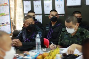 วันนี้ (12 ธันวาคม 2565) เวลา 07.50 น. ที่กองบังคับการกองร้อยทหารพรานที่ 4409 ตำบลปากู อำเภอทุ่งยางแดง จังหวัดปัตตานี พลตรี ไพศาล หนูสังข์ รองแม่ทัพภาคที่ 4 / รองผู้อำนวยการรักษาความมั่นคงภายในภาค 4 ส่วนหน้า พร้อมคณะฯ เดินทางลงพื้นที่ตรวจเยี่ยมกองร้อยทหารพรานที่ 4402, กองร้อยทหารพรานที่ 4406, กองร้อยทหารพรานที่ 4409, กองร้อยทหารพรานที่ 4410, และกองร้อยทหารพรานที่ 4413 เพื่อติดตามการปฏิบัติงาน ตลอดจนรับทราบปัญหาในการดำเนินงานในห้วงที่ผ่านมา พร้อมหารือและมอบนโยบายแนวทางการดำเนินงานให้กำลังพลทุกหน่วยสามารถปฏิบัติได้อย่างมีประสิทธิภาพมากที่สุด โดยมีพันเอก ภาคภูมิ จันทรักษ์ ผู้บังคับหน่วยเฉพาะกิจกรมทหารพรานที่ 44 และกำลังพลร่วมให้การต้อนรับ