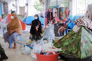 โดยประชาชนที่ประสบอุทกภัย ได้อพยพเข้าศูนย์พักพิงชั่วคราว มีจำนวน 30 ครัวเรือน รวม 117 คน เนื่องจากน้ำท่วมเข้าบ้านพักอาศัย ไม่สามารถอาศัยอยู่ได้ จึงจำเป็นต้องขนย้ายสิ่งของไปอยู่ศูนย์พักพิงชั่วคราวจนกว่าสถานการณ์จะกลับเข้าสู่ภาวะปกติ ทั้งนี้หมู่บ้านแลแบงเป็นหนึ่งในพื้นที่ประสบอุทกภัยน้ำท่วมของอำเภอสะบ้าย้อย จังหวัดสงขลา