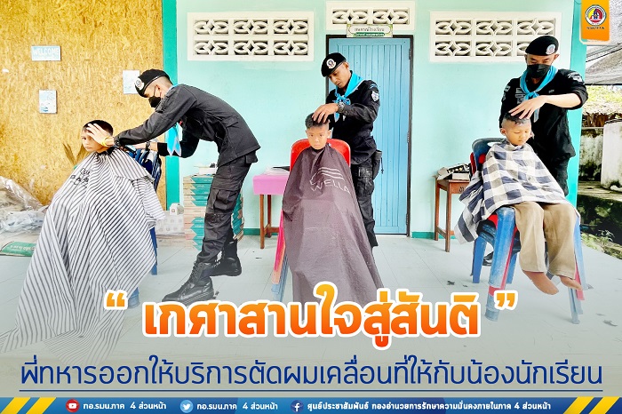 สำหรับโครงการ “เกศาสานใจ สู่สันติ” จัดขึ้นโดยการออกให้บริการตัดผมเคลื่อนที่ให้กับเด็กนักเรียนตามโรงเรียนต่าง ๆ ในพื้นที่รับผิดชอบของหน่วย เพื่อเป็นการช่วยลดค่าใช้จ่ายให้กับผู้ปกครอง และสร้างสัมพันธ์อันดีระหว่างเจ้าหน้าที่กับคณะครู และนักเรียนในโรงเรียน ทั้งนี้เป็นนโยบายของกองทัพบกที่ให้หน่วยทหารทุกหน่วยของกองทัพบก เข้าไปช่วยเหลือประชาชนที่เดือดร้อนในทุกโอกาส ตามศักยภาพของหน่วยที่สามารถปฏิบัติได้