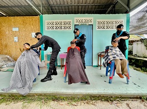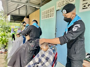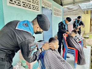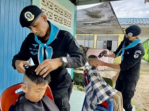 เมื่อวันที่ 13 ธันวาคม 2565 เวลา 08.00 น. ที่โรงเรียนบ้านท่าสู หมู่ที่ 3 บ้านท่าสู ตำบลบ้านน้ำบ่อ อำเภอปะนาเระ จังหวัดปัตตานี หน่วยเฉพาะกิจกรมทหารพรานที่ 42 จัดกำลังพลชุดปฏิบัติการเสริมสร้างความเข้าใจ กองร้อยทหารพรานที่ 4215 ออกให้บริการตัดผมเคลื่อนที่ให้กับเด็กนักเรียน ตามโครงการ “เกศาสานใจ สู่สันติ” เพื่อให้น้อง ๆ นักเรียนได้มีทรงผมสั้น สะอาดเรียบร้อย และยังเป็นการช่วยแบ่งเบาภาระลดค่าใช้จ่ายในครัวเรือนของนักเรียน และผู้ปกครอง อีกด้วย โดยการการดำเนินการดังกล่าว สามารถสร้างความสุข และสร้างรอยยิ้มให้กับคณะครูและนักเรียน เป็นอย่างมาก ทั้งยังเป็นการพัฒนาเสริมสร้างความสัมพันธ์อันดี สร้างภาพลักษณ์ที่ดีของหน่วยอีกด้วย