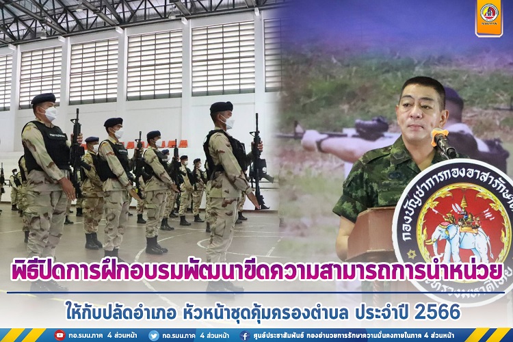 พลโท ศานติ ศกุนตนาค แม่ทัพภาคที่ 4 /ผู้อำนวยการรักษาความมั่นคงภายในภาค 4 กล่าวว่า สำหรับพิธีปิดการฝึกอบรมพัฒนาขีดความสามารถการนำหน่วย ให้กับปลัดอำเภอ หัวหน้าชุดคุ้มครองตำบลรุ่นที่ 1 ประจำปีงบประมาณ 2566 ขอบคุณทุกส่วนที่เกี่ยวข้อง และให้การสนับสนุนในการฝึกอบรมครั้งนี้ ได้ดำเนินการฝึกอบรมเป็นไปด้วยความเรียบร้อยบรรลุวัตถุประสงค์ ที่ให้ความสำคัญกับส่วนบังคับบัญชา ชุดคุ้มครองตำบล ในการขับเคลื่อนการปฏิบัติภารกิจของชุดคุ้มรองตำบล และการบูรณาการกำลังอาสาสมัครประจำพื้นที่ เพื่อสนับสนุนการปฏิบัติภารกิจด้านความมั่นคง ร่วมกับหน่วยเฉพาะกิจประจำพื้นที่ให้สอดคล้องงานสำคัญตามนโยบายของ กองอำนวยการรักษาความมั่นคงภายในภาค 4 ส่วนหน้า และงานบำบัดทุกข์ บำรุงสุข ประชาชนในพื้นที่ หวังผู้เข้ารับการฝึกอบรมจะนำความรู้ ทักษะ และประสบการณ์ที่ได้รับจากการฝึกอบรม นำกลับไปใช้ในการปฏิบัติงานจริงในชุดคุ้มครองตำบลของตนเอง โดยเฉพาะคุณลักษณะผู้นำหน่วย ที่จะต้องนำไปปฏิบัติหน้าที่ในการปกครองบังคับบัญชา การกำกับดูแลกำลังพล โดยเฉพาะ หัวหน้าชุดคุ้มครองตำบล ต้องเข้าไปนอนในฐานปฏิบัติการ เพื่อให้การควบคุมกำกับดูแลกำลังพลของหน่วยมีประสิทธิภาพ และพัฒนาขีดความสามารถในการปฏิบัติงาน มีมาตรการรักษาความปลอดภัยที่ตั้งฐานปฏิบัติการและการปฏิบัติต่อพื้นที่หมู่บ้านรับผิดชอบมีประสิทธิภาพมากยิ่งขึ้น