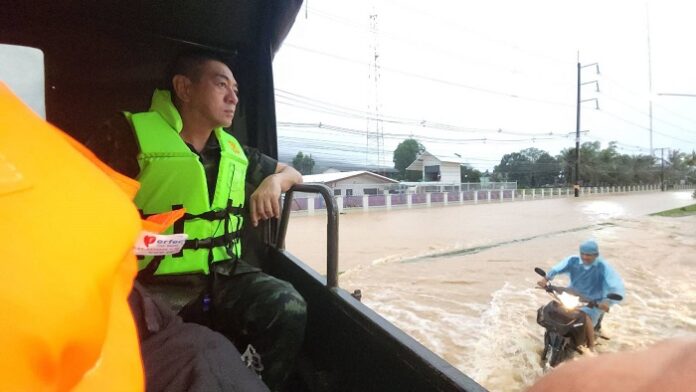 โดยแม่ทัพภาคที่ 4 กล่าวว่า “สถานการณ์น้ำท่วมในพื้นที่อำเภอหาดใหญ่ จังหวัดสงขลา อยู่ในขั้นวิกฤตพอสมควร เนื่องจากมีฝนตกหนักอย่างต่อเนื่อง และมีน้ำไหลลงจากเขา ทำให้บ้านเรือนของพี่น้องประชาชนได้รับผลกระทบหลายหมู่บ้าน ในส่วนบ้านการเคหะ ตำบลท่าข้าม พบว่าทั้งหมู่บ้านเกิดน้ำท่วมสูง ส่วนใหญ่ต้องขึ้นไปอาศัยอยู่บนชั้น 2 ของบ้าน และพบว่ารถยนต์หลายสิบคันจมอยู่ใต้น้ำ ขณะนี้ได้ให้ศูนย์บรรเทาสาธารณภัย มณฑลทหารบกที่ 42 ลงพื้นที่เข้าช่วยเหลือพี่น้องประชาชน ที่ได้รับผลกระทบอย่างต่อเนื่อง โดยเฉพาะผู้สูงอายุ ผู้ป่วยติดเตียง หากพี่น้องประชาชนต้องการขนย้ายสิ่งของก็มีรถบรรทุกขนาดใหญ่ คอยให้ความช่วยเหลือพี่น้องประชาชน”
