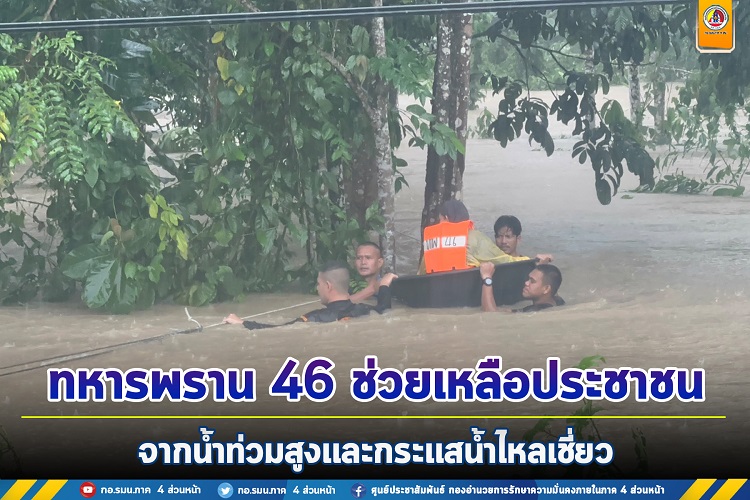 เมื่อวันที่ (18 ธันวาคม 2565) เวลา 12.00 น. เจ้าหน้าที่หน่วยเฉพาะกิจกรมทหารพรานที่ 46 ได้รับแจ้งจากประชาชนในพื้นที่หมู่ที่ 7 ตำบลสุวารี อำเภอรือเสาะ จังหวัดนราธิวาส ว่ามีประชาชนคนติดอยู่ภายในกระท่อม พร้อมสัตว์เลี้ยง ไม่สามารถหนีน้ำออกจากกระท่อมได้ เนื่องจากน้ำบริเวณโดยรอบท่วมสูง หน่วยจึงได้จัดกำลังพลชุดปฏิบัติการเสริมสร้างความเข้าใจ ลงพื้นที่เข้าช่วยเหลือโดยทันที เมื่อถึงที่เกิดเหตุพบ นายอิบดุลรอฮิม มาเซอและ อายุ 56 ปี และนางสาวปิวะ ไซซิง อายุ 54 ปี สองสามี-ภรรยา ติดอยู่ภายในกระท่อม ห่างจากถนนประมาณ 50 เมตร บริเวณโดยรอบมีน้ำจากคลองใกล้เคียงท่วมสูงและกระแสน้ำไหลเชี่ยว เจ้าหน้าที่จึงได้ใช้พลข้ามลำน้ำ นำเชือก ไปผูกเป็นสายนำทาง เพื่อทำการช่วยเหลือ และสามารถนำสองสามี-ภรรยา พร้อมสัตว์เลี้ยงออกมาได้อย่างปลอดภัย