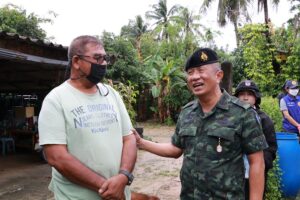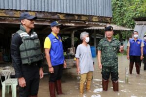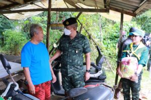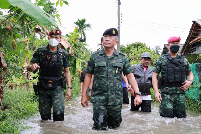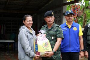 วันนี้ 19 ธันวาคม 2565 เวลา 14.00 น. พลตรีปราโมทย์ พรหมอินทร์ รองแม่ทัพภาคที่ 4/รองผู้อำนวยการรักษาความมั่นคงภายในภาค 4 ส่วนหน้า พร้อมด้วยเจ้าหน้าที่ทหารและฝ่ายปกครอง ลงพื้นที่บ้านใต้ หมู่ที่ 4 ตำบลควน อำเภอปะนาเระ จังหวัดปัตตานี มอบถุงยังชีพช่วยเหลือประชาชนที่ได้รับผลกระทบจากอุทกภัยในพื้นที่ จำนวน 50 ชุด พร้อมกำชับให้เจ้าหน้าที่ติดตามสถานการณ์และเร่งให้ความช่วยเหลือจนกว่าสถานการณ์น้ำจะคลี่คลายและลดระดับลง แต่หากน้ำยังคงท่วมขัง การเข้าช่วยเหลือจะมีความยากลำบาก จะต้องใช้ยุทโธปกรณ์และปรับแผนการปฏิบัติโดยทันที