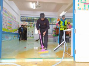 เมื่อวันที่ 21 ธันวาคม 2565 ณ ที่โรงเรียนบ้านกือเม็ง ตำบลอาซ่อง อำเภอรามัน จังหวัดยะลา หน่วยเฉพาะกิจกรมทหารพรานที่ 41 โดยชุดปฏิบัติการเสริมสร้างความเข้าใจ กองร้อยทหารพรานที่ 4110 ร่วมกับ คณะครู ลงพื้นที่ทำกิจกรรมบำเพ็ญสาธารณประโยชน์ โดยร่วมมือ ร่วมใจ ทำความสะอาดอาคารเรียนและห้องเรียน ที่ได้รับผลกระทบจากสถานการณ์ฝนตกหนัก ทำให้เกิดน้ำท่วมขังภายในอาคารเรียนและห้องเรียน เพื่อเป็นการฟื้นฟูหลังจากระดับน้ำลดลงและทำให้โรงเรียนสามารถเปิดการเรียนการสอนได้ตามปกติ