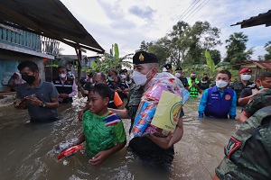 โดยแม่ทัพภาคที่ 4 ได้นำถุงยังชีพใส่เรือท้องแบนไปมอบให้กับพี่น้องประชาชนที่ไม่สามารถออกจากบ้านและอยู่กันอย่างยากลำบาก โดยจับมือกับส่วนราชการที่เกี่ยวข้อง เจ้าหน้าที่อาสาสมัครสาธารณสุขประจำหมู่บ้าน เพื่อช่วยเหลือผู้ที่เจ็บป่วยคนชรา ผู้ป่วยติดเตียงให้ได้รับการบรรเทาทุกข์ในเบื้องต้นเสียก่อน