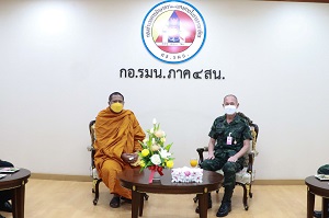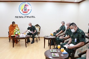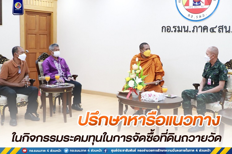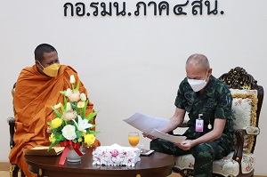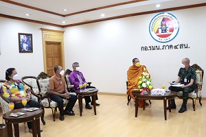 วันนี้ 24 ธันวาคม 2565 เวลา 10.00 น. ณ ห้องรับรอง กองอำนวยการรักษาความมั่นคงภายในภาค 4 ส่วนหน้า ค่ายสิรินธร ตำบลเขาตูม อำเภอยะรัง จังหวัดปัตตานี พลตรี กรกฎ ภู่โชติ รองผู้อำนวยการรักษาความมั่นคงภายในภาค 4 ส่วนหน้า ให้การต้อนรับพระครูสมุห์ปฐาพร (ท่านอาร์ม) เจ้าอาวาสวัดโคกสมานประชาราม (วัดโคกหมัก) และคณะ เดินทางมาพบปะเพื่อปรึกษาหารือแนวทางในการจัดกิจกรรมระดมทุนในการจัดซื้อที่ดินถวายวัด จำนวน 36 ไร่ เพื่อใช้เป็นสถานที่ฝึกอาชีพ และดำเนินการจัดเป็นศูนย์การเรียนรู้ ตามแนวทางเศรษฐกิจพอเพียง โดยมีคณะผู้บังคับบัญชา กองอำนวยการรักษาความมั่นคงภายในภาค 4 ส่วนหน้า ร่วมให้การต้อนรับ
