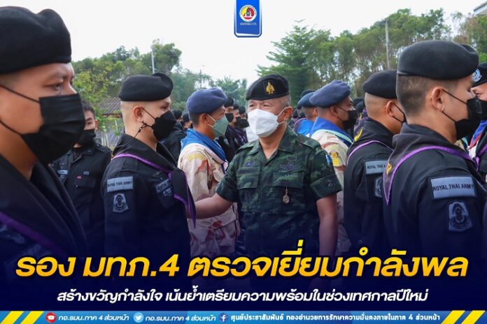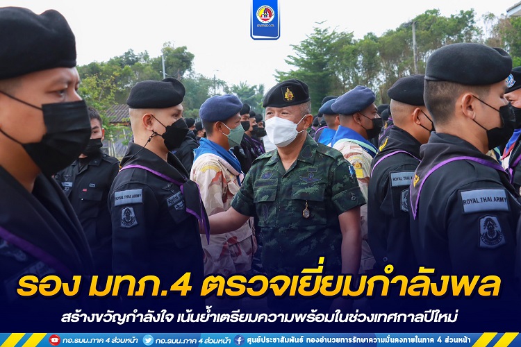 ทั้งนี้ รองแม่ทัพภาคที่ 4 ได้พูดคุยสอบถามข้อขัดข้องต่าง ๆ ในการปฏิบัติหน้าที่ ได้เน้นย้ำการดูแลฐานปฏิบัติการ การเตรียมความพร้อมทั้งกำลังพลและยุทโธปกรณ์ ด้านการข่าว การวางกำลังพล ในห้วงเทศกาลปีใหม่ ตรวจสิ่งผิดกฎหมายและอำนวยความสะดวกให้แก่พี่น้องประชาชนเหมือนเป็นญาติพี่น้อง พร้อมอวยพรปีใหม่แก่กำลังพลและได้มอบสิ่งของเพื่อเป็นสร้างขวัญและกำลังใจในการปฏิบัติหน้าที่ต่อไป