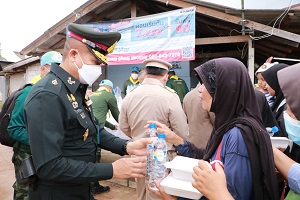 วันนี้ (24 ธันวาคม 2565) เวลา 10.00 น. ณ โรงเรียนราชประชานุเคราะห์ 44 ตำบลพร่อน อำเภอตากใบ จังหวัดนราธิวาส พระบาทสมเด็จพระเจ้าอยู่หัว ทรงพระกรุณาโปรดเกล้าฯ ให้ พลเอก เฉลิมชัย สิทธิสาท องคมนตรี ร่วมกับ มูลนิธิราชประชานุเคราะห์ ในพระบรมราชูปถัมภ์ เชิญสิ่งของพระราชทาน จำนวน 3,000 ชุด มอบให้แก่ประชาชนผู้ประสบอุทกภัยในพื้นที่จังหวัดนราธิวาส (อำเภอตากใบ , อำเภอระแงะ , อำเภอจะแนะ และอำเภอรือเสาะ) พร้อมร่วมประชุมรับฟังสถานการณ์อุทกภัยในพื้นที่จังหวัดนราธิวาส , แผนป้องกันและให้ความช่วยเหลือประชาชน จากสำนักงานป้องกันและบรรเทาสาธารณภัยจังหวัดนราธิวาส ก่อนลงพื้นที่มอบสิ่งของพระราชทานแก่ประชาชนในพื้นที่อำเภอตากใบ จังหวัดนราธิวาส จำนวน 2 ครัวเรือน ประกอบด้วย นายชู ทองบุญ อายุ 67 ปี บ้านเลขที่ 125 หมู่ที่ 5 และ นายนำ สุขเพ็ชร อายุ 55 ปี บ้านเลขที่ 106/1 หมู่ที่ 5 ตำบลพร่อน อำเภอตากใบ จังหวัดนราธิวาส โดยมี พลตรี ไพศาล หนูสังข์ รองแม่ทัพภาคที่ 4 / รองผู้อำนวยการรักษาความมั่นคงภายในภาค 4 ส่วนหน้า , นายสนั่น พงษ์อักษร ผู้ว่าราชการจังหวัดนราธิวาส , พลตรี เฉลิมพร ขำเขียว ผู้บัญชาการกองพลทหารราบที่ 15 / ผู้บังคับหน่วยเฉพาะกิจนราธิวาส , นายอำเภอ (อำเภอตากใบ , อำเภอระแงะ , อำเภอจะแนะ และอำเภอรือเสาะ) , หัวหน้าส่วนราชการ , คณะครูโรงเรียนราชประชานุเคราะห์ 44 ตลอดจนประชาชนผู้ประสบอุทกภัย เข้าร่วมพิธี ยังความปลื้มปิติและสำนึกในพระมหากรุณาธิคุณอย่างหาที่สุดมิได้