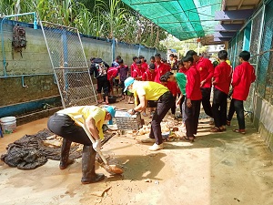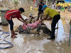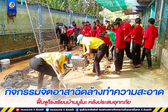 โดยเจ้าหน้าที่แต่ละหน่วยงานได้นำเครื่องมือ รถบรรทุกน้ำ รถขยะ และกำลังพล ร่วมบูรณาการพัฒนาฟื้นฟู ทำความสะอาด ด้วยการเก็บกวาดขนย้ายข้าวของ อุปกรณ์สื่อการเรียนการสอน เครื่องนอนและเครื่องครัวจาน ชาม ที่จมอยู่ใต้น้ำออกมาทำความสะอาดให้สามารถเก็บกวาดและล้างถูคราบดินโคลนออกจากห้องเรียน ห้องพักครูได้อย่างสะดวก เพื่อให้กลับเข้าสู่สภาวะปกติโดยเร็ว