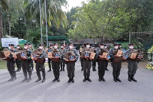 จากนั้นเวลา 10.10 น. องคมนตรี และคณะ เดินทางต่อไปยังชุดเฝ้าตรวจชายแดนที่ 4301 ตำบลตำมะลัง อำเภอเมือง จังหวัดสตูล เชิญสิ่งของพระราชทานมอบแก่กำลังพลปฏิบัติภารกิจของกองกำลังเทพสตรี จำนวน 125 ชุด เพื่อเป็นขวัญ และกำลังใจให้แก่เจ้าหน้าที่ในการรักษาพื้นที่แนวชายแดนสร้างความมั่นคงปลอดภัยให้แก่พี่น้องประชาชน โดยมี นายจำเริญ ทิพญพงศ์ธาดา ผู้ว่าราชการจังหวัดสตูล, พลตรี วรเดช เดชรักษา ผู้บัญชาการกองกำลังเทพสตรี, รองผู้บังคับการตำรวจภูธรจังหวัดสตูล, รองผู้อำนวยการรักษาความมั่นคงภายในจังหวัดสตูล, รองผู้อำนวยการศูนย์อำนวยการรักษาผลประโยชน์ของชาติทางทะเลจังหวัดสตูล, ตลอดจนหัวหน้าส่วนราชการในพื้นที่ เข้าร่วมพิธี