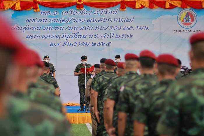 โอกาสนี้ ผู้ช่วยผู้บัญชาการทหารบกได้อ่านสารอำนวยอวยพรปีใหม่ จากผู้บัญชาการทหารบก ที่มีถึงกำลังพล และส่งมอบของขวัญปีใหม่ จากกองทัพบกแก่ผู้แทนหน่วย โดยมีกำลังพลปฏิบัติราชการในพื้นที่จังหวัดชายแดนภาคใต้ ร่วมเป็นผู้แทนในการรับมอบ ส่งต่อไปยังกำลังพลเป็นขวัญและกำลังใจแก่ทุกนาย ก่อนพบปะเยี่ยมเยียนกำลังพลที่มาร่วมต้อนรับ ตลอดจนกล่าวอวยพรปีใหม่ ให้ทุกภาคส่วนปฏิบัติหน้าที่ด้วยความเข้มแข็ง ปลอดภัย มีความสุข สุขภาพร่างกายแข็งแรง และช่วงเทศกาลปีใหม่นี้ ขอให้ดูแลรักษาความปลอดภัยให้ประชาชนได้มีความสุขเพื่อเป็นของขวัญปีใหม่ให้แก่ประชาชนอีกด้วย
