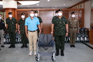พร้อมกันนี้ ผู้ช่วยผู้บัญชาการทหารบก พร้อมด้วยผู้แทนจากบริษัททรัพย์เจริญ (ประเทศไทย) จำกัด ภาคประชาสังคม และผู้มีจิตศรัทธาได้ร่วมกันส่งมอบวีลแชร์ จำนวน 20 คัน ให้กับผู้แทนของจังหวัดนราธิวาส ปัตตานี และสงขลา ส่งต่อให้กับผู้พิการทางการเคลื่อนไหว ทั้งนี้เพื่อเป็นการอำนวยความสะดวกให้กับผู้พิการทางการ ส่งเสริมการพัฒนาคุณภาพชีวิตให้ดีขึ้น ตลอดจนเพื่อเป็นของขวัญ เนื่องในเทศกาลปีใหม่ 2566 ที่จะถึงนี้