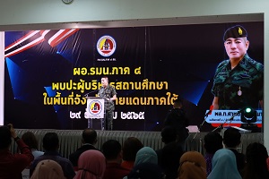 สำหรับกิจกรรม ”พบปะกลุ่มผู้บริหารสถานศึกษาในพื้นที่ จชต.” นั้น กองอำนวยรักษาความมั่นคงภายในภาค 4 ส่วนหน้า จัดขึ้น เพื่อเปิดโอกาสให้ผู้บริหารสถานศึกษาผู้ที่มีบทบาทสำคัญในการปลูกฝัง อบรม สั่งสอนเยาวชนของชาติ เพื่อให้น้องๆ เยาวชนเติบโตเป็นบุคลากรที่ดีของสังคมและประเทศชาติต่อไปในอนาคต ตลอดจนเพื่อให้ผู้บริหารสถานศึกษาได้รับทราบนโยบายการแก้ไขปัญหาในพื้นที่จังหวัดชายแดนภาคใต้ ของกองอำนวยการรักษาความมมั่นคงภายในภาค 4 ส่วนหน้า เพื่อวางกรอบนโยบายด้านการศึกษาให้สามารถดำเนินการคู่ขนานกับงานด้านความั่นคงในพื้นที่จังหวัดชายแดนภาคใต้ อีกทั้งเปิดรับฟังความคิดเห็น ปัญหา และข้อเสนอแนะ ที่ต้องการให้กองอำนวยการรักษาความมมั่นคงภายในภาค 4 ส่วนหน้า สนับสนุนแก้ไขปัญหาจากผู้บริหารสถานศึกษา ทุกระดับ เพื่อส่งเสริมความร่วมมือระหว่างกัน อันเป็นการขับเคลื่อนงานร่วมกันในทุกมิติ เพื่อให้เกิดความรัก ความเข้าใจ ความสามัคคีของชุมชนและสังคม อันเป็นการร่วมกันสร้างสันติสุขให้เกิดขึ้นในพื้นที่ได้อย่างยั่งยืน