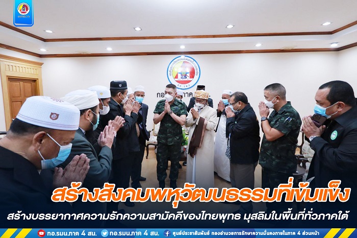 วันนี้ 2 มกราคม 2566 เวลา 10.30 น. ที่ห้องรับรองกองอำนวยการรักษาความมั่นคงภายในภาค 4 ส่วนหน้า ค่ายสิรินธร อำเภอยะรัง จังหวัดปัตตานี พลโท ศานติ ศกุนตนาค แม่ทัพภาคที่ 4/ ผู้อำนวยการรักษาความมั่นคงภายในภาค 4 ให้การต้อนรับและร่วมพบปะหารือกับ ผศ.ดร.อะห์มัด อิสัน ประธานคณะกรรมการอิสลามประจำจังหวัดพัทลุง/นายกสมาคมสมาพันธ์คณะกรรมการอิสลาม 14+1 จังหวัดภาคใต้ และ ผศ.ดร.อัสมัน แตอาลี ผู้อำนวยการสถาบันฮาลาล มหาวิทยาลัยสงขลานครินทร์ และ นายสุไลมาน แวมามะ นายกสมาคมสื่อมวลชนจังหวัดชายแดนภาคใต้/ที่ปรึกษา และผู้ประสานงานสมาคมสมาพันธ์คณะกรรมการอิสลาม 14+1 จังหวัดภาคใต้ ตลอดจนฝ่ายอำนวยการที่เกี่ยวข้องในการทำงานเพื่อความมั่นคงในพื้นที่ เพื่อเสนอแนะแนวทางเสริมสร้างสันติสุข สร้างความรักความสามัคคี สร้างสังคมพหุวัฒนธรรมที่เอื้อประโยชน์ต่อพี่น้องประชาชนโดยส่วนรวม