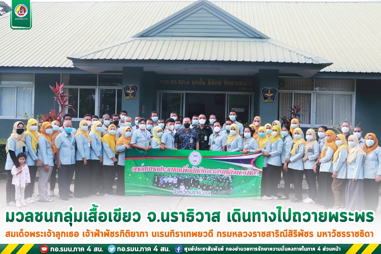 วันนี้ 3 มกราคม 2566 เวลา 08.00 น. ณ ห้องเอนกประสงค์ กองกำลังทางอากาศเฉพาะกิจที่ 9 สนามบินบ่อทอง อำเภอหนองจิก จังหวัดปัตตานี สำนักมวลชนและกิจการพิเศษ กองอำนวยการรักษาความมั่นคงภายในภาค 4 ส่วนหน้า นำมวลชน องค์กรภาคประชาชนเพื่อสันติและเศรษฐกิจพอเพียงจังหวัดนราธิวาส (กลุ่มเสื้อเขียว) เพื่อไปถวายพระพร สมเด็จพระเจ้าลูกเธอเจ้าฟ้าพัชรกิติยาภานเรนทิราเทพยวดี กรมหลวงราชสาริณีสิริพัชร มหาวัชรราชธิดา ณ โรงพยาบาลจุฬาลงกรณ์ สภากาชาดไทย กรุงเทพมหานคร เพื่อเป็นการแสดงความจงรักภักดีต่อสถาบันพระมหากษัตริย์ โดยมี พันเอกปองเชษฐ์ พูนช่วย ผู้อำนวยการสำนักมวลชนและกิจการพิเศษกองอำนวยการรักษาความมั่นคงภายในภาค 4 ส่วนหน้า, นาวาอากาศเอกจุมพล กลิ่นผา ผู้บังคับกองกำลังทางอากาศเฉพาะกิจที่ 9 กล่าวพบปะและร่วมในพิธีเปิด