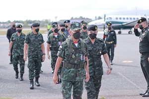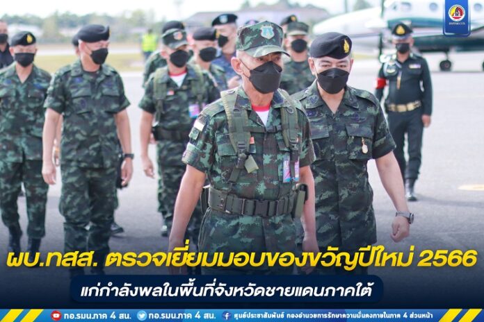 วันนี้ 3 ม.ค. 66 เวลา 10.55 น. ที่กองอำนวยการรักษาความมั่นคงภายในภาค 4 ส่วนหน้า ตำบลเขาตูม อำเภอยะรัง จังหวัดปัตตานี พลเอก เฉลิมพล ศรีสวัสดิ์ ผู้บัญชาการทหารสูงสุด/ ผู้บัญชาการศูนย์บัญชาการทางทหาร กองบัญชาการกองทัพไทย และคณะ เดินทางมาตรวจเยี่ยมบำรุงขวัญและให้กำลังใจกำลังพลที่ปฏิบัติภารกิจในพื้นที่จังหวัดชายแดนภาคใต้ โดยมี พลโท ศานติ ศกุนตนาค แม่ทัพภาคที่ 4/ ผู้อำนวยการรักษาความมั่นคงภายในภาค 4 พร้อมด้วยแม่ทัพน้อยที่ 4, รองแม่ทัพภาคที่ 4/ รองผู้อำนวยการรักษาความมั่นคงภายในภาค 4 ส่วนหน้า, ผู้บังคับบัญชาหน่วยขึ้นตรง กองอำนวยการรรักษาความมั่นคงภายในภาค 4 ส่วนหน้า, กองกำลังตำรวจ จากทั้ง 3 จังหวัด ปัตตานี ยะลา นราธิวาส และ 4 อำเภอของจังหวัดสงขลา ร่วมให้การต้อนรับ