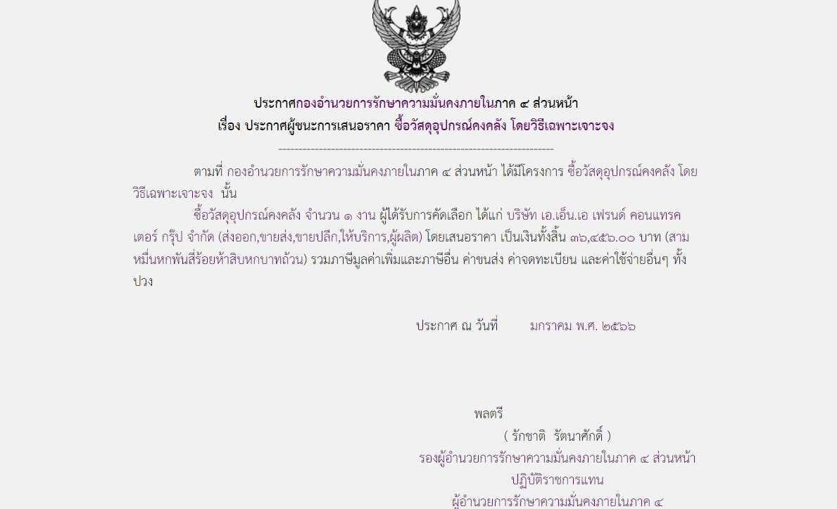 จัดซื้อ จัดจ้างประกาศผู้ชนะการเสนอราคา ประกาศผู้ชนะการเสนอราคา ซื้อวัสดุอุปกรณ์คงคลัง โดยวิธีเฉพาะเจาะจง January 4, 2023 466 Share Facebook Twitter Google+ Telegram LINE