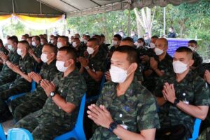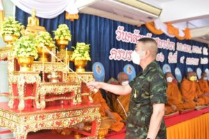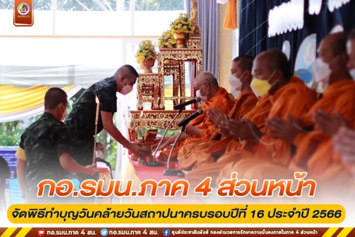 สำหรับภายในงานประกอบด้วย การสักการะพระศรีศากยมุนีพุทธโคดม, องค์จตุคาม องค์รามเทพ และรอยพระพุทธบาท พร้อมทั้งนิมนต์พระสงฆ์ประกอบพิธีสวดพระพุทธมนต์และถวายภัตตาหารเพล เพื่อความเป็นสิริมงคลแก่หน่วยและกำลังพลที่ปฏิบัติงาน ภายในกองอำนวยการรักษา ความมั่นคงภายในภาค 4 ส่วนหน้า รวมทั้งยังได้ประกอบพิธีบำเพ็ญกุศลทางศาสนาพุทธ เพื่ออุทิศส่วนกุศลให้แก่ดวงวิญญาณกำลังพลที่เสียชีวิตจากการปฏิบัติหน้าที่ในพื้นที่จังหวัดชายแดนภาคใต้ เพื่อเป็นการระลึกถึงคุณความดีในความกล้าหาญ เสียสละ อุทิศตนมุ่งมั่นปฏิบัติหน้าที่ทำประโยชน์เพื่อความสงบสุขของประชาชนและประเทศชาติ ตลอดจนเจ้าหน้าที่ของรัฐ, พี่น้องประชาชนที่สูญเสียชีวิตไปกับสถานการณ์ในพื้นที่