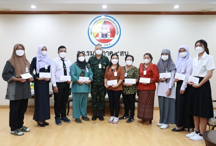 วันนี้ (5 มกราคม 2566) เวลา 09.30 น. ที่ห้องรับรอง กองอำนวยการรักษาความมั่นคงภายในภาค 4 ส่วนหน้า ค่ายสิรินธร อำเภอยะรัง จังหวัดปัตตานี พันเอก นิติ ติณสูลานนท์ รองเลขาธิการกองอำนวยการรักษาความมั่นคงภายในภาค 4 ส่วนหน้า เป็นประธานในพิธีมอบทุนประจำปีการศึกษา ให้กับนักเรียนนักศึกษาในจังหวัดชายแดนภาคใต้ เป็นทุนจากมูลนิธิแม่บ้านไทยมุสลิม จำนวน 5 ทุน เป็นเงิน 72,000 บาท และทุนจากมูลนิธิชิน โสภณพนิช จำนวน 10 ทุน 140,000 บาท ในระดับชั้นปฐมศึกษา มัธยมศึกษา และระดับมหาวิทยาลัย เพื่อเป็นการส่งเสริมและสนับสนุนการศึกษาให้กับเด็กในพื้นที่จังหวัดชายแดนภาคใต้อย่างต่อเนื่องจนจบปริญญาตรี ซึ่งปัจจุบันเยาวชนในพื้นที่ใช้ทุนการศึกษาในหลากหลายสาขาอาชีพ และเมื่อสำเร็จการศึกษาแล้ว ก็พร้อมจะกลับมาพัฒนาชุมชนบ้านเกิดของตัวเอง โดยในพิธีดังกล่าวมี คณะผู้บังคับบัญชาจากกองอำนวยการรักษาความมั่นคงภายในภาค 4 ส่วนหน้า เข้าร่วม