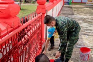 เมื่อวันที่ 5 มกราคม 2566 เวลา 08.30 น. ณ วัดเวฬุวัน ตำบลสะเตง อำเภอเมือง จังหวัดยะลา พลตรี ธนัช ฉิมพาลี ผู้บังคับหน่วยเฉพาะกิจยะลา มอบหมายให้ ผู้ช่วยหัวหน้าฝ่ายกิจการพลเรือนหน่วยเฉพาะกิจยะลา นำกำลังพลจิตอาสา ร่วมกิจกรรมจิตอาสาบำเพ็ญสาธารณประโยชน์พัฒนาปรับภูมิทัศน์ และทาสีโบสถ์ เนื่องในวันคล้ายวันประสูติ สมเด็จพระเจ้าลูกเธอ เจ้าฟ้าสิริวัณณวรี นารีรัตนราชกัญญา และได้จัดเตรียมสถานที่ในพิธีบรรพชาอุปสมบทหมู่ 45 รูป เพื่อถวายเป็นพระราชกุศลแด่ สมเด็จพระเจ้าลูกเธอ เจ้าฟ้าพัชรกิติยาภา นเรนทิราเทพยวดี กรมหลวงราชสาริณีสิริพัชร มหาวัชรราชธิดา ให้ทรงหายจากพระอาการประชวรและมีพลานามัยสมบูรณ์แข็งแรงโดยเร็ววัน