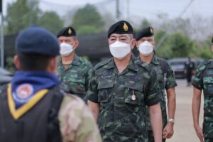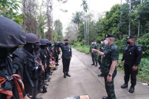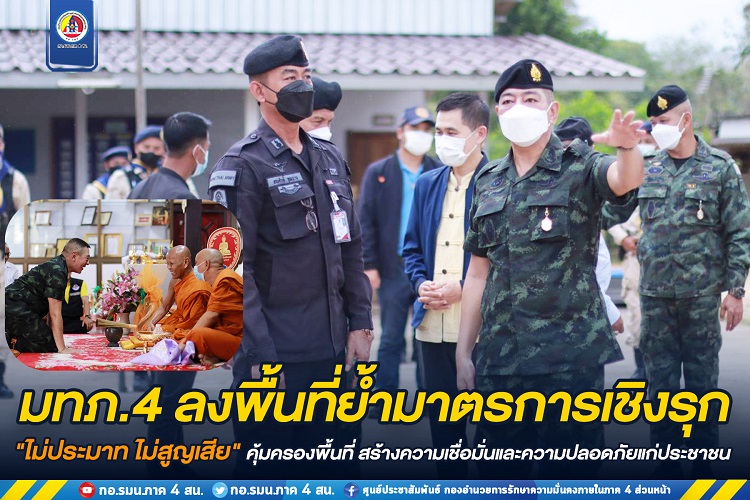 วันนี้ 6 มกราคม 2566 เวลา 10.30 น. พลโท ศานติ ศกุนตนาค แม่ทัพภาคที่ 4/ผู้อำนวยการรักษาความมั่นคงภายในภาค 4 เดินทางลงพื้นที่ตรวจเยี่ยมการปฏิบัติงานและให้กำลังใจเจ้าหน้าที่ชุดคุ้มครองตำบลสุไหงปาดี และชุดปฏิบัติการพิทักษ์พื้นที่ ของหน่วยเฉพาะกิจกรมทหารพรานที่ 48 ซึ่งกำลังจะเข้าปฏิบัติการจรยุทธ์ ลาดตระเวนควบคุมพื้นที่ตามแผนการปฏิบัติเพื่อสร้างความปลอดภัยให้กับพี่น้องประชาชน ก่อนเข้านมัสการพระเทพศีลวิสุทธิ์ เจ้าอาวาสวัดประชุมชลธารา อำเภอสุไหงปาดี จังหวัดนราธิวาส และพบปะให้กำลังใจพี่น้องไทยพุทธในคราวเดียวกัน โดยมี พลตรี เฉลิมพร ขำเขียว ผู้บัญชาการกองพลทหารราบที่ 15/ผู้บังคับหน่วยเฉพาะกิจนราธิวาส พันเอก ภาคิน เกื้อกูล ผู้บังคับหน่วยเฉพาะกิจกรมทหารพรานที่ 48 คณะที่ปรึกษากองอำนวยการรักษาความมั่นคงส่วนหน้าร่วมคณะติดตาม